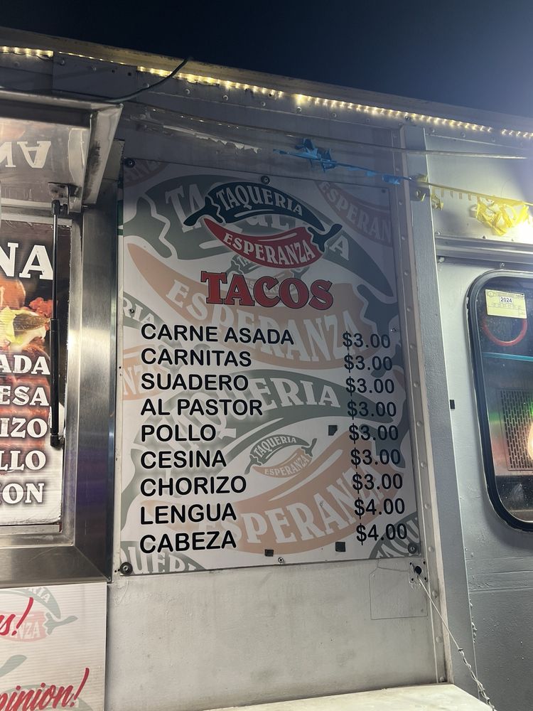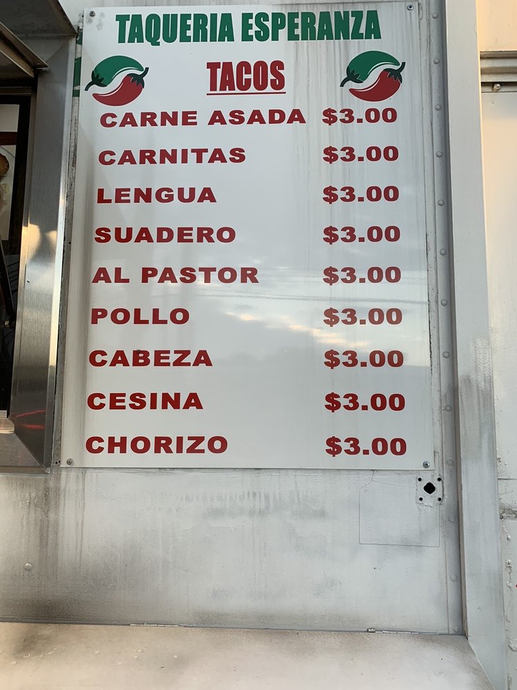 Welcome to Taqueria Esperanza, a culinary gem tucked away in Manassas Park, VA, offering an irresistible menu of authentic Mexican street food. Specializing in mouth-watering tacos, their offerings include favorites like Carne Asada, Lengua, and Al Pastor, all priced at just $3 each. For those craving a heartier option, the tortas and quesadillas are available at a modest $8, showcasing equally flavorful ingredients.